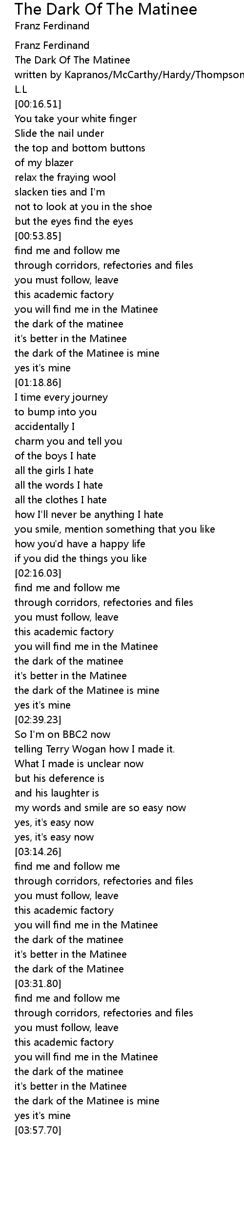 written by Kapranos/McCarthy/Hardy/Thompson |