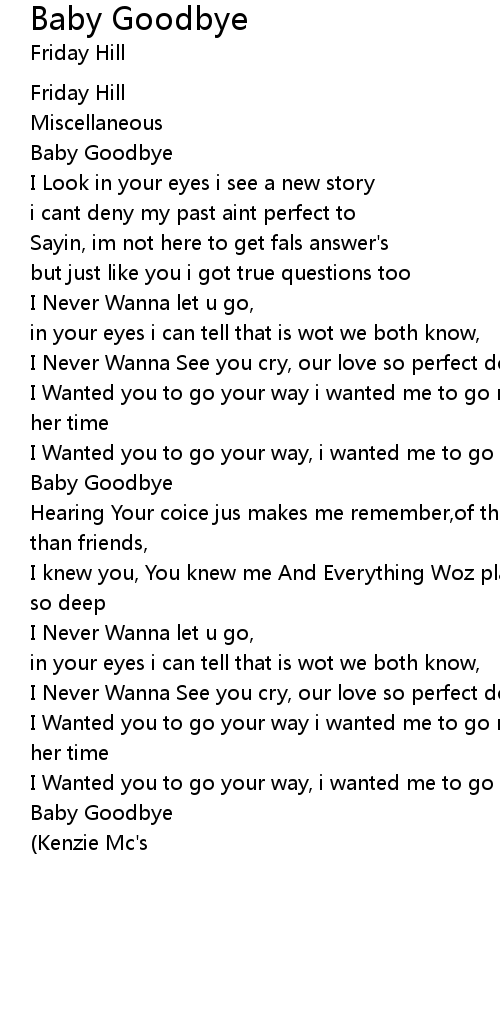 I Never Wanna See you cry, our love so perfect dont let it die baby baby baby |