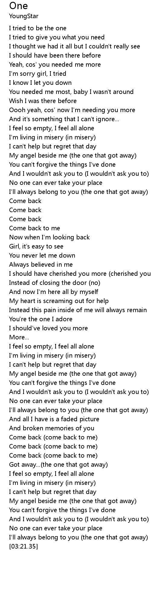 One Lyrics