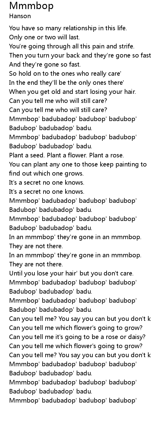 | [01:50.399] | Mmmbop' badubadop' badubop' badubop' |
