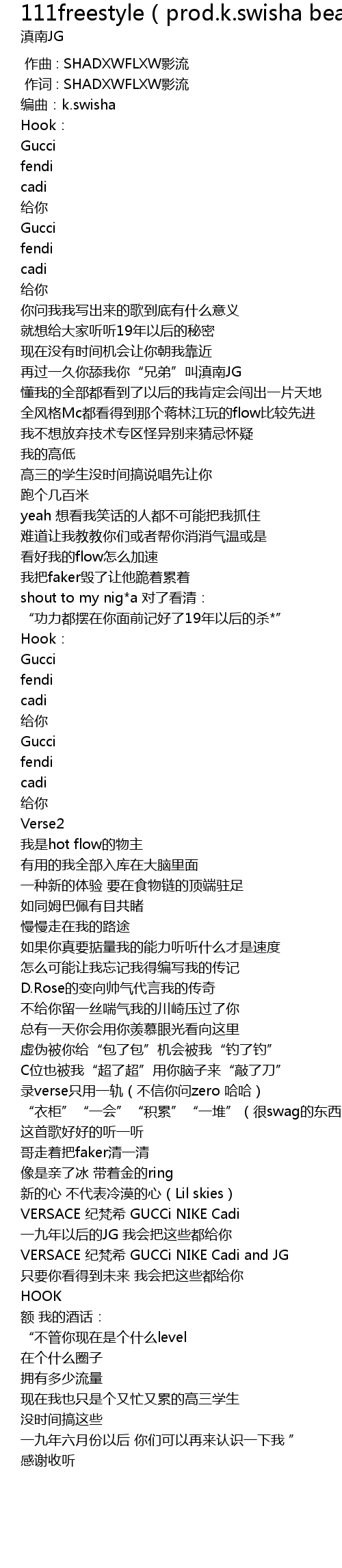 | [02:19.63] | VERSACE ji fan xi GUCCi NIKE Cadi and JG |