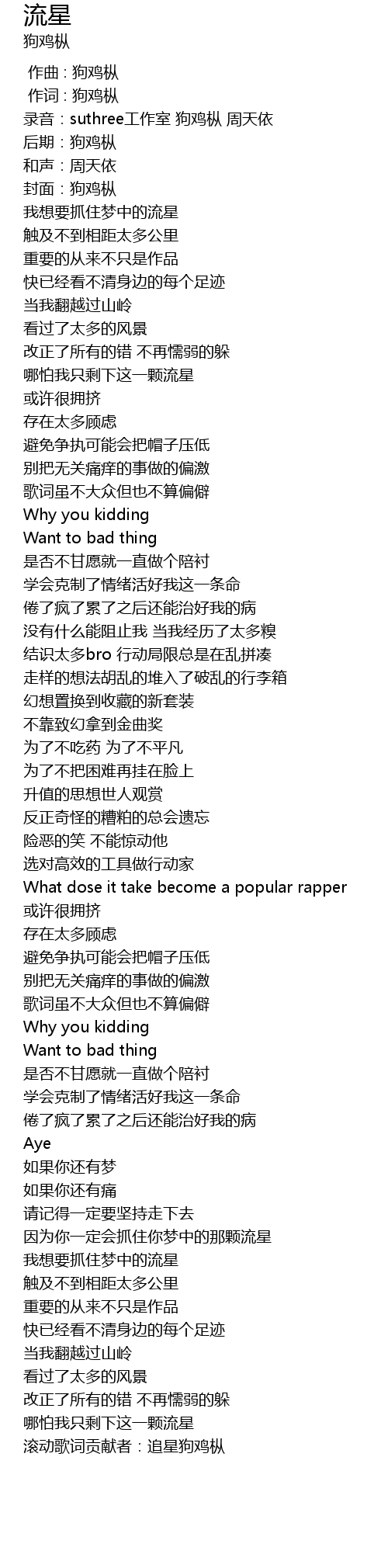 | [00:01.000] | 作词 : 狗鸡枞 |