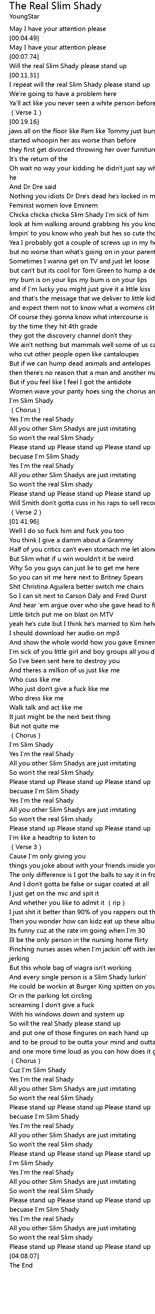 | [00:12.30] | I repeat will the real Slim Shady please stand up |