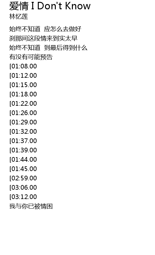 | [02:52.00][01:44.00] | I DON'T KNOW I DON'T KNOW |
