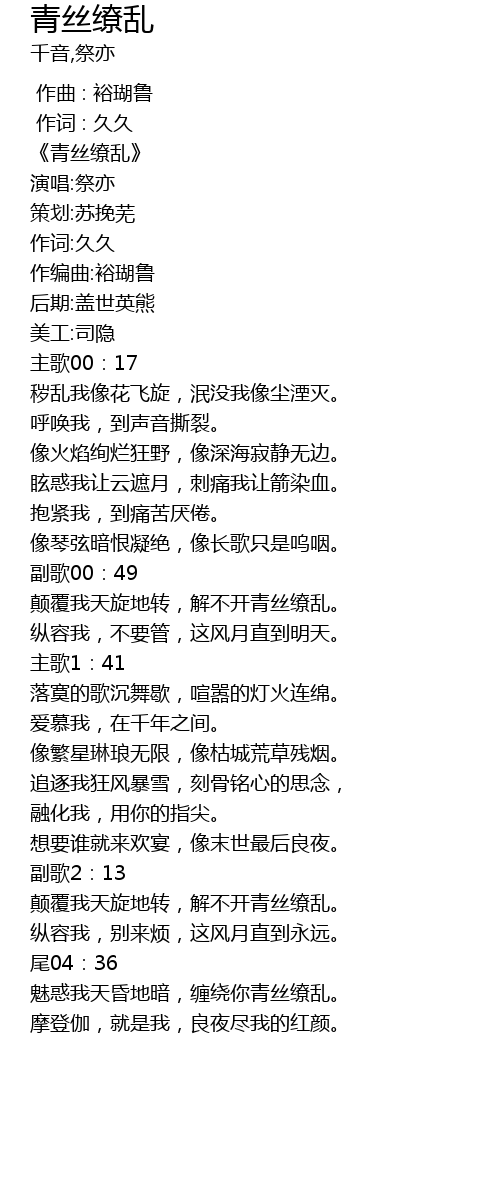 | [03:05.187] | 魅惑我天昏地暗,缠绕你青丝缭乱。 |