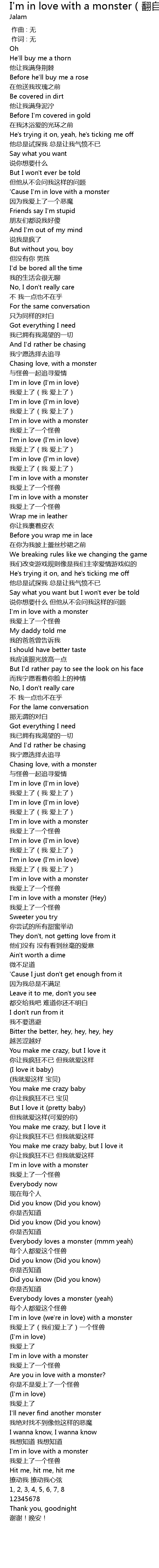 | [02:51.576] | I' m in love we' re in love with a monster |