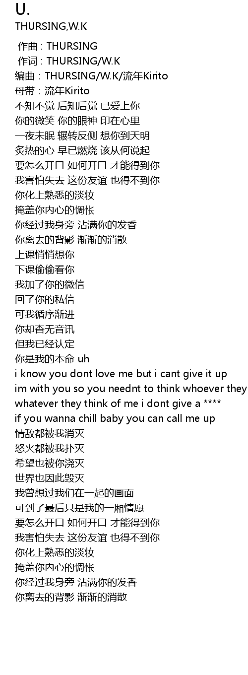 | [00:00.000] | 作词 : THURSING/W.K |