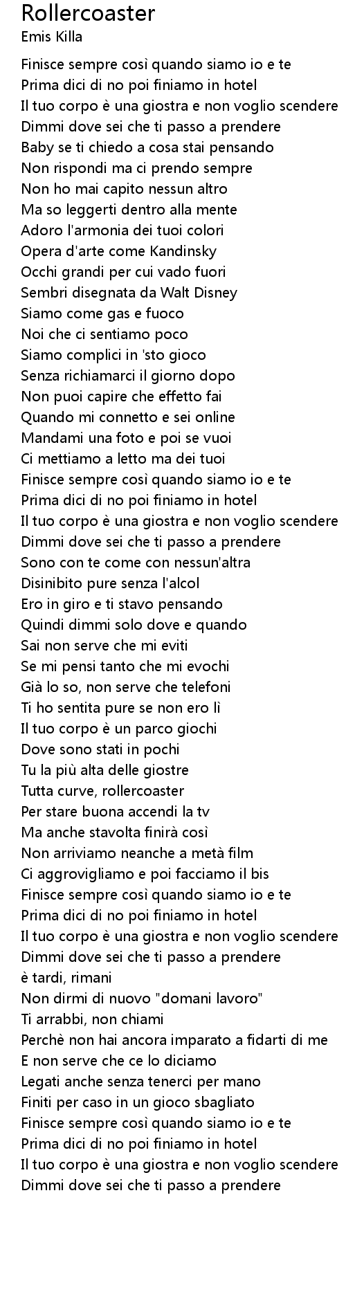 | [02:18.31] | Il tuo corpo è una giostra e non voglio scendere |