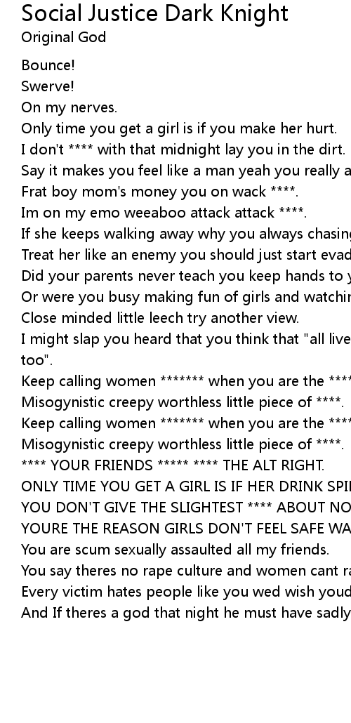 YOU DON'T GIVE THE SLIGHTEST **** ABOUT NO EQUAL RIGHTS. |