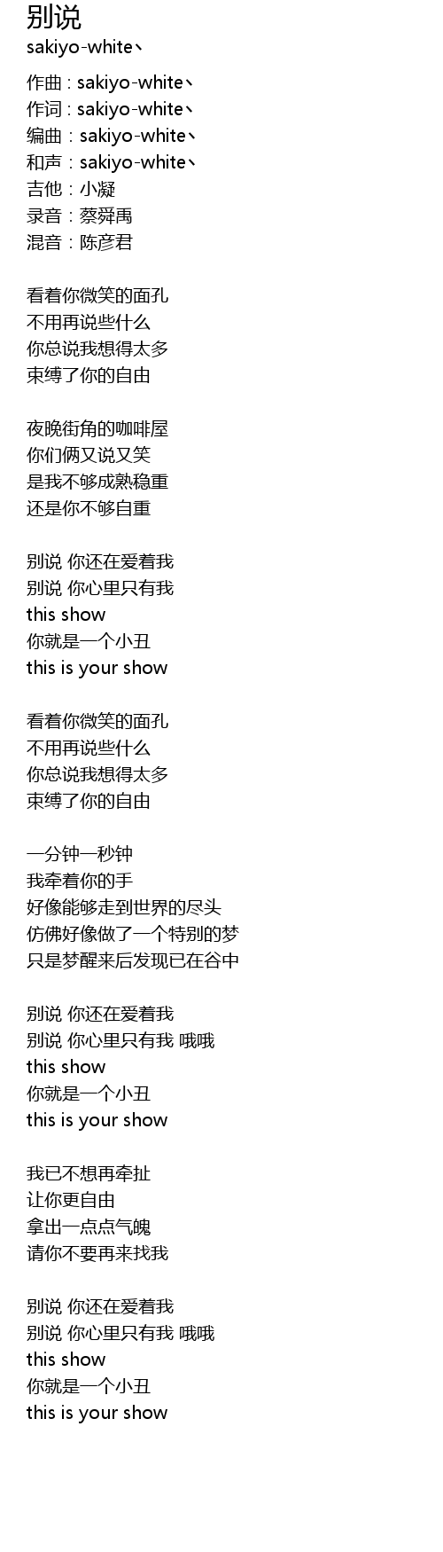 | Song | 别说 |