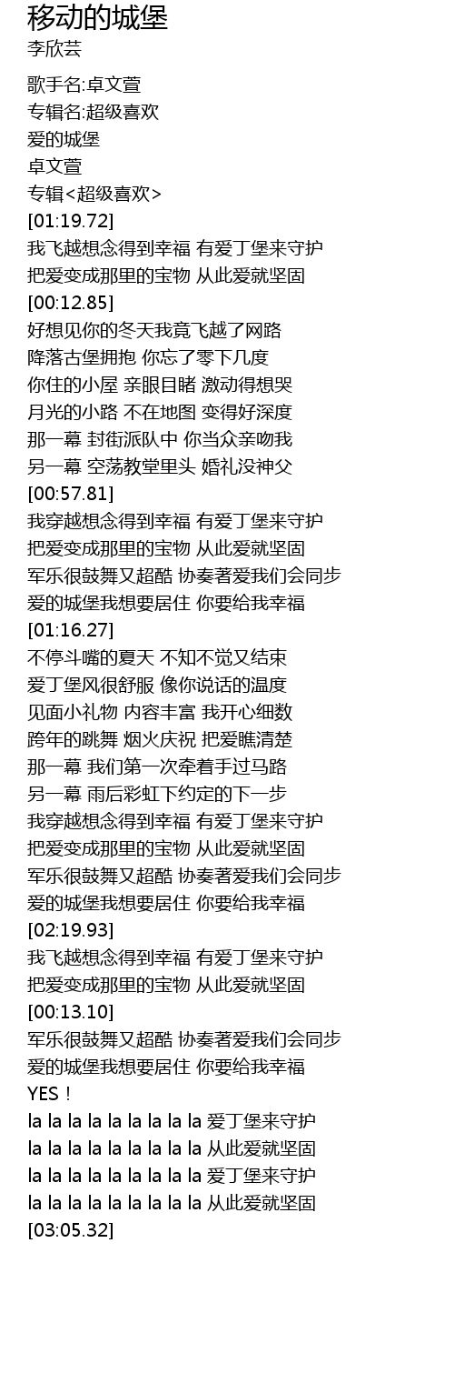 | [02:15.01] | 爱的城堡我想要居住 你要给我幸福 |