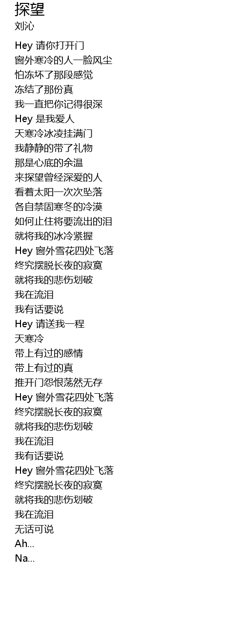 | [03:23.900] | Hey 窗外雪花四处飞落 |