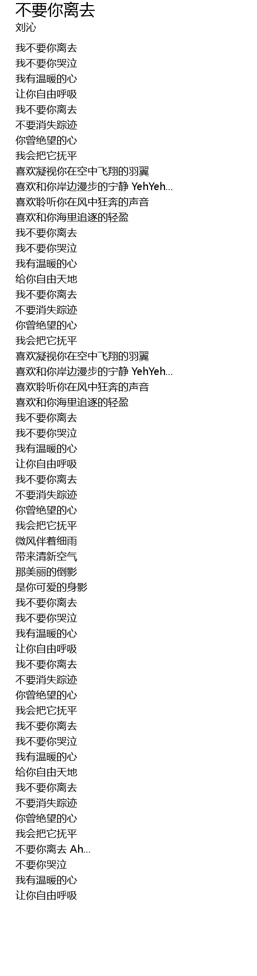 | [03:17.000] | wǒ bú yào nǐ lí qù |