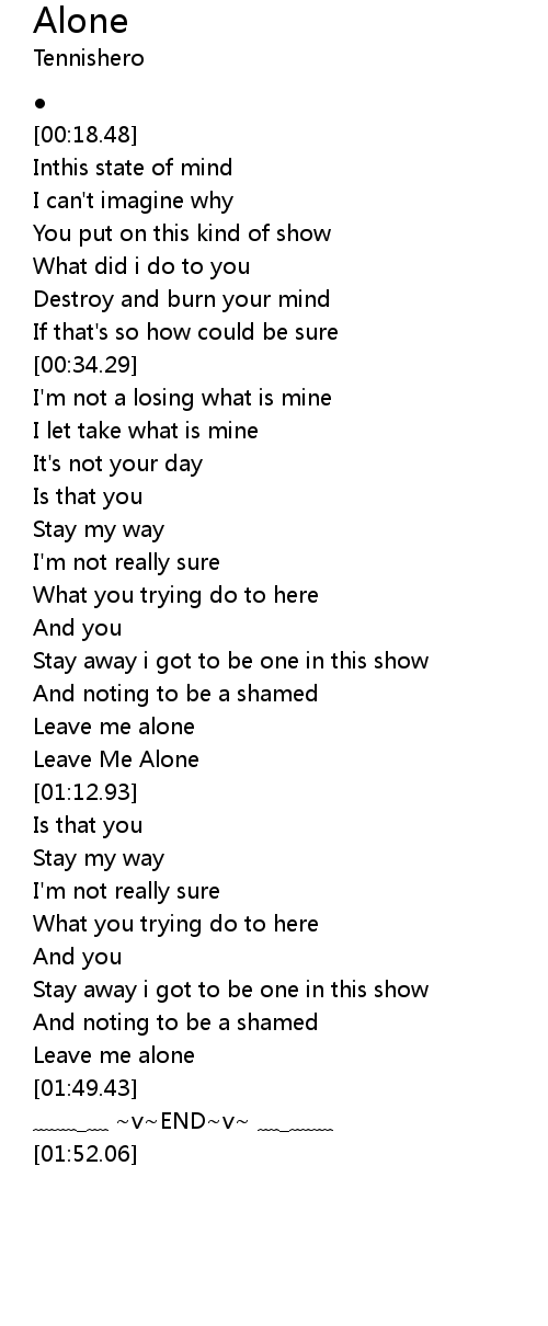 | [01:47.56] | Leave me alone |