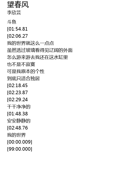 | [01:42.40][01:48.38] | 独居的斗鱼 |