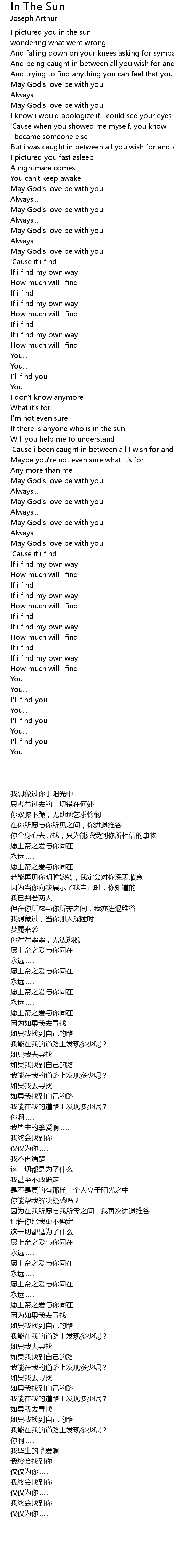 I pictured you in the sun |