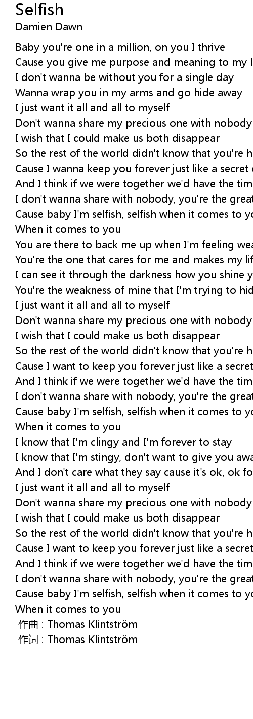 | [03:16] | Cause baby I' m selfish, selfish when it comes to you |