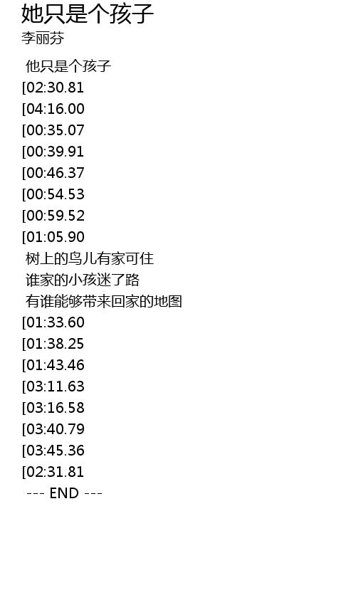 | [03:55.16][03:45.36][03:25.76] | 她(他)只是个孩子 |