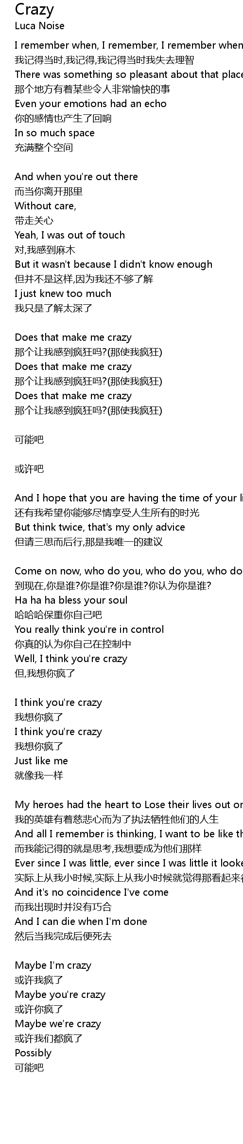 | Song | Crazy |