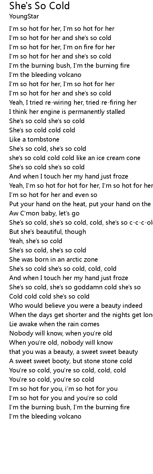 She's so cold, she's so cold, cold, she's so c-c-c-old |