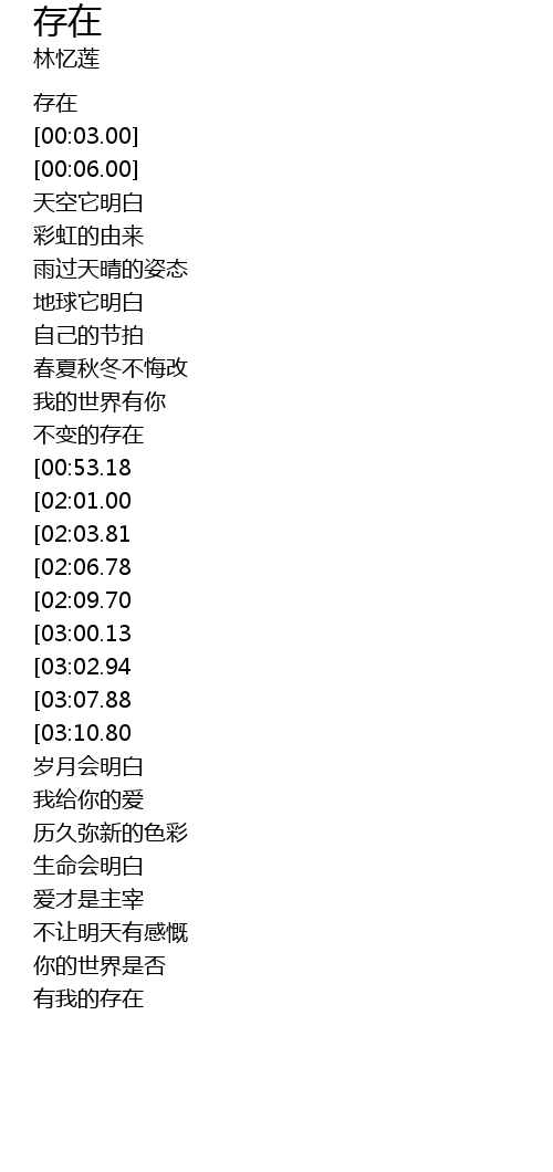 | [00:00.00] | 存在 |