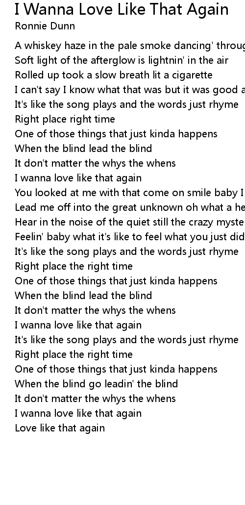 I Wanna Love Like That Again Lyrics