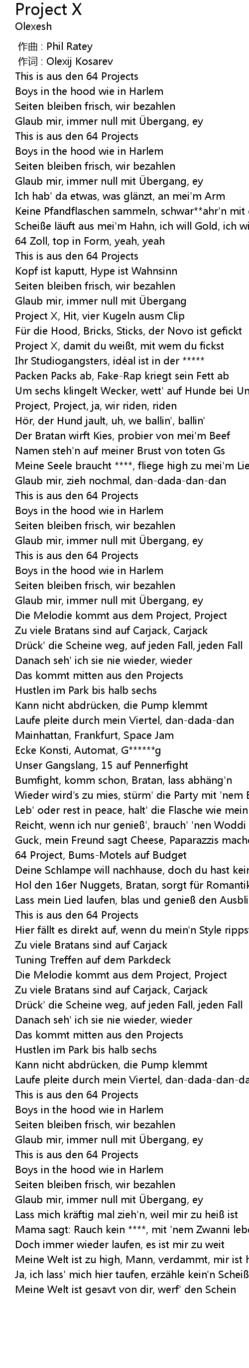 | [00:46.95] | Project X, damit du wei t, mit wem du fickst |