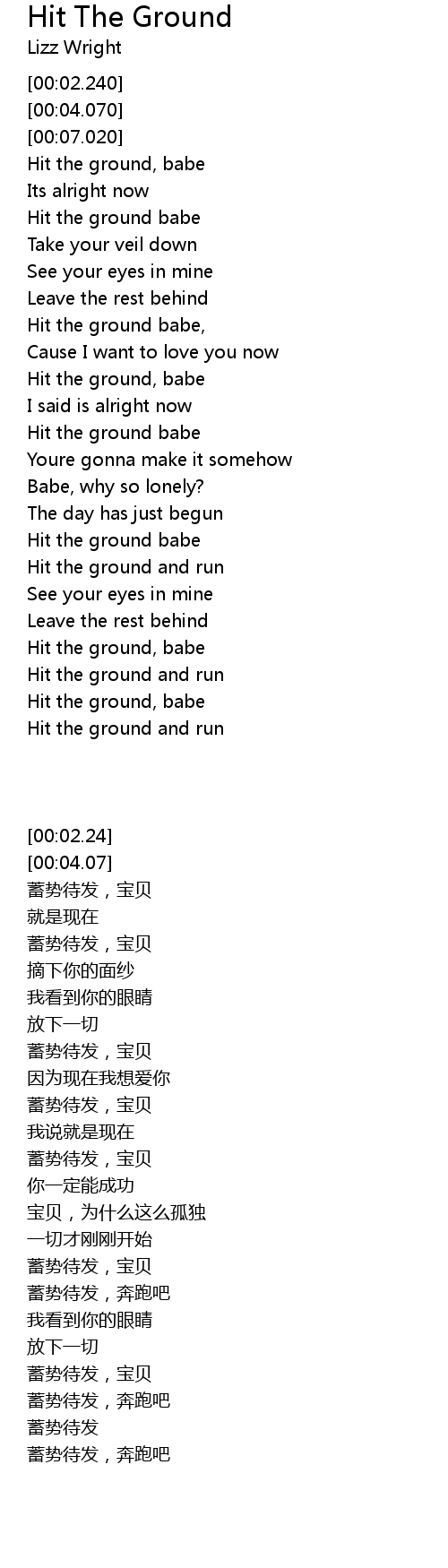 | [02:03.210] | Hit the ground babe |