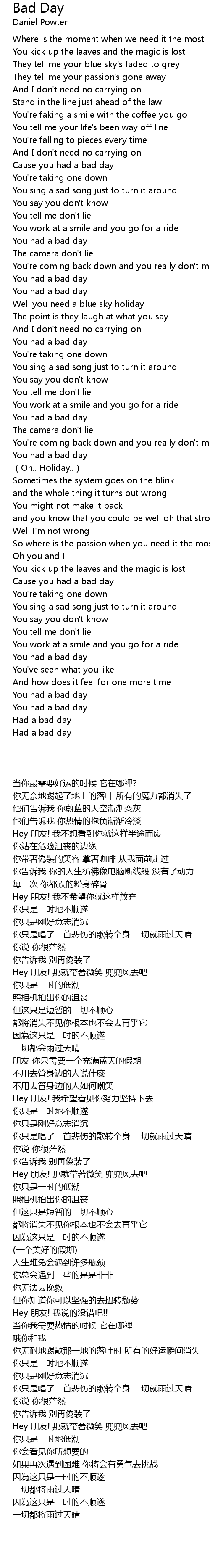| Song | Bad Day |