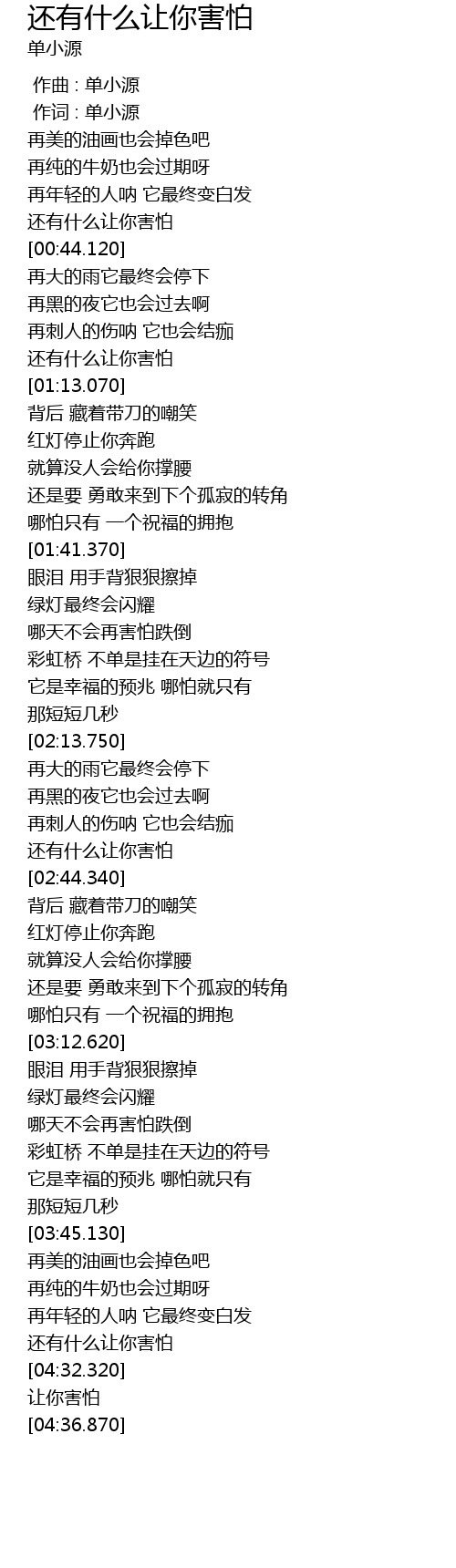 | [00:39.040] | hái yǒu shén me ràng nǐ hài pà |