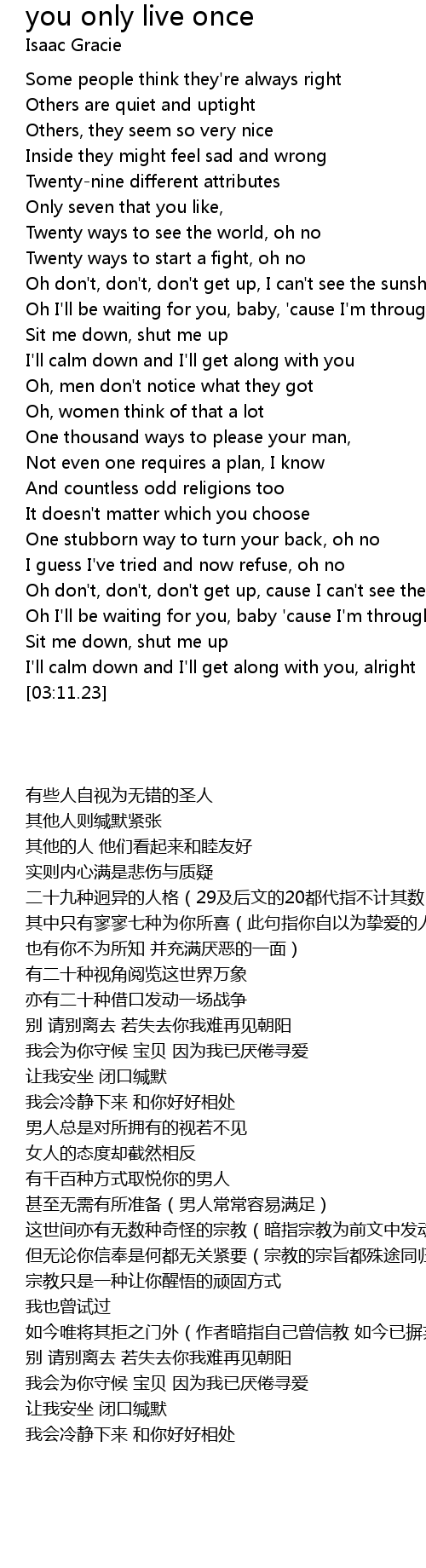 Oh don't, don't, don't get up, I can't see the sunshine |