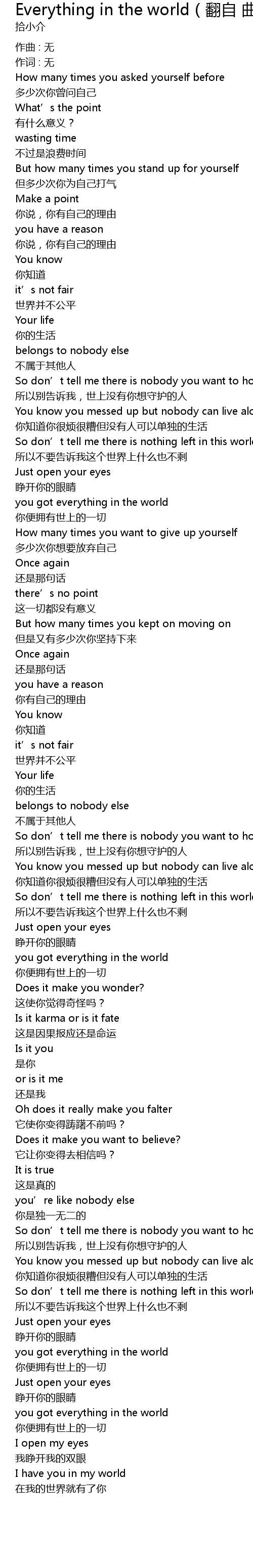 | suǒ yǐ bú yào gào sù wǒ zhè gè shì jiè shang shén me yě bù shèng | |