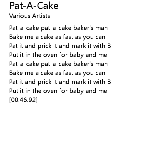 | [00:09.02] | Pat-a-cake pat-a-cake baker's man |