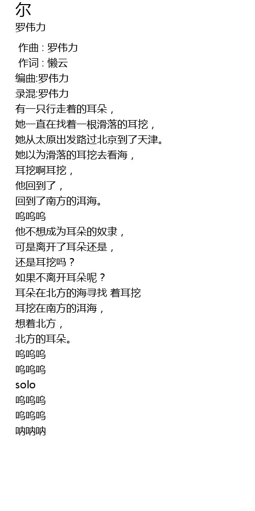 | [02:17.185] | 耳朵在北方的海寻找 着耳挖 |