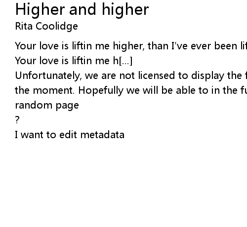 | Unfortunately, we are not licensed to display the full lyrics for this song at the moment. Hopefully we will be able to in the future. Until then, how about a | |