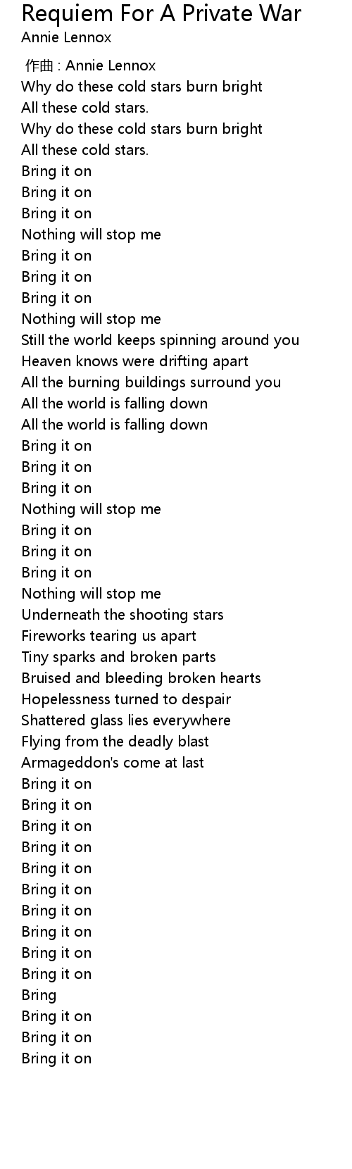 | [03:03.99] | Bring it on |