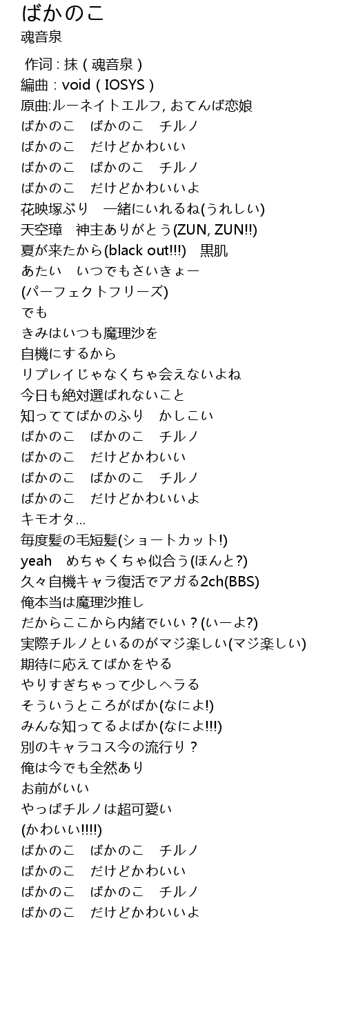 | [02:23.007] | ばかのこ ばかのこ チルノ |