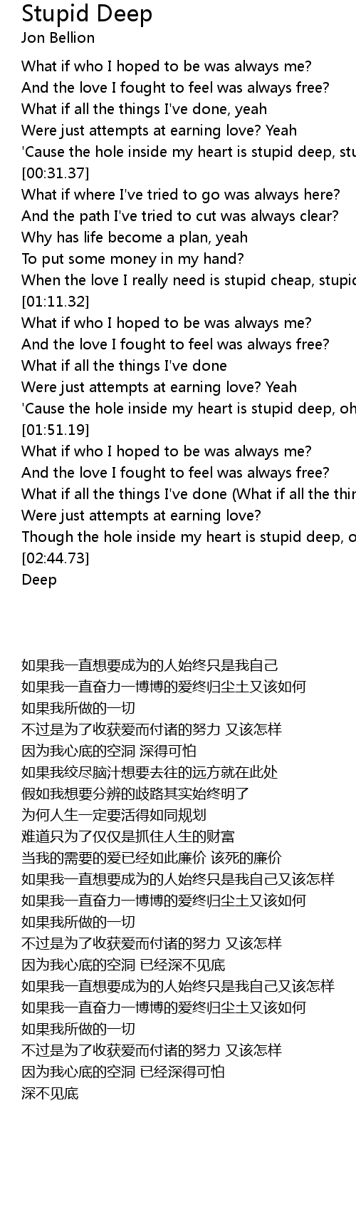 Though the hole inside my heart is stupid deep, oh, stupid deep |