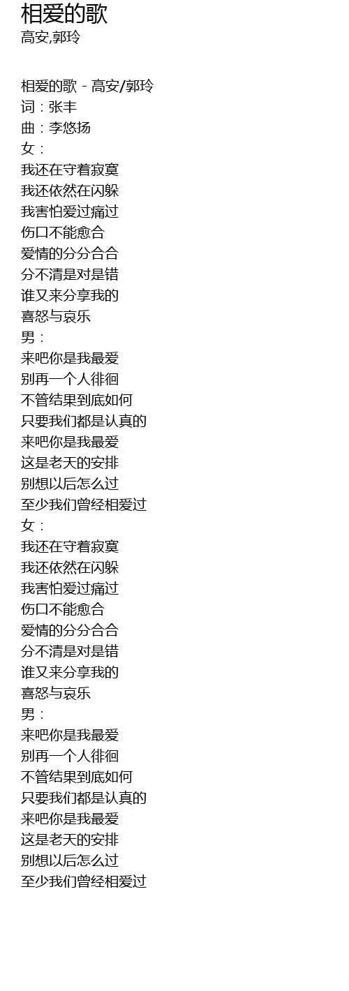 | 相爱的歌 - 高安/郭玲 | |
