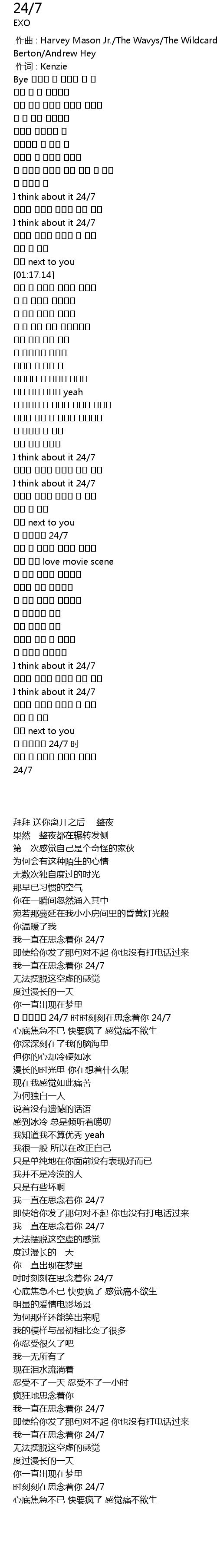 | [03:37.6] | 네 생각뿐인 24/7 时 |
