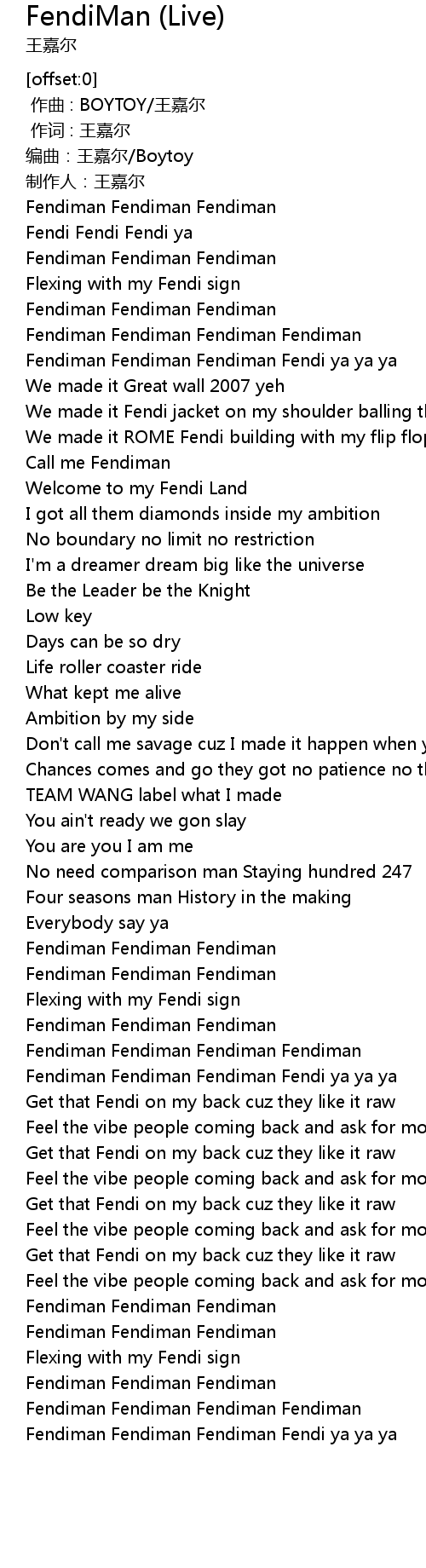 | [01:59.95] | Fendiman Fendiman Fendiman |