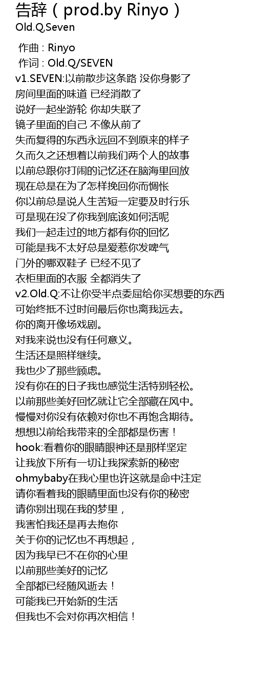 | [00:01.000] | 作词 : Old.Q/SEVEN |