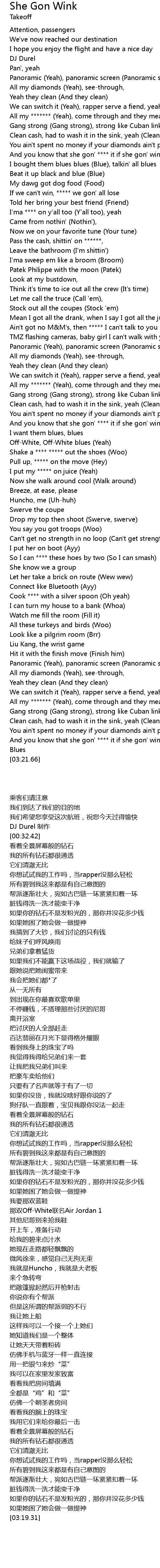 [00:59.32] And you know that she gon' **** it if she gon' wink, yeah