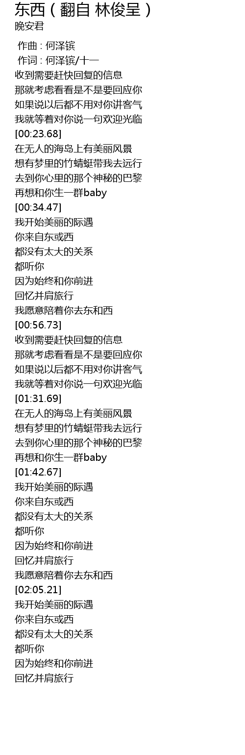 | [02:00.65] | 我愿意陪着你去东和西 |