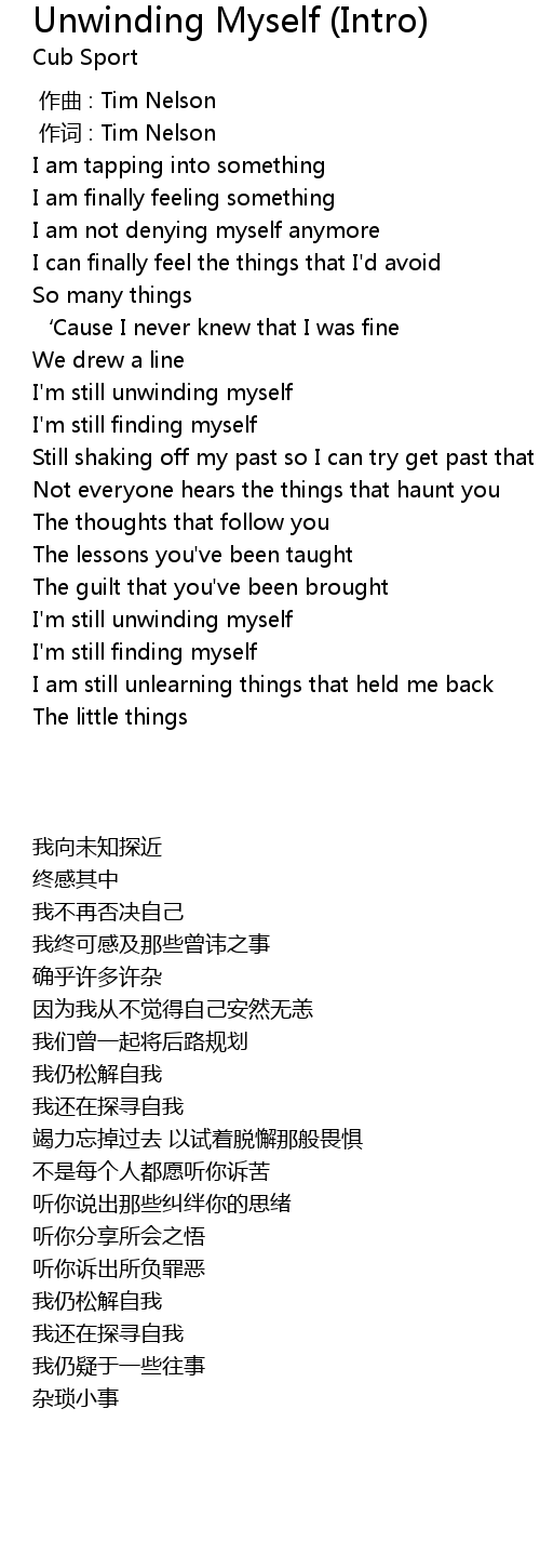 | [00:58.48] | I' m still unwinding myself |