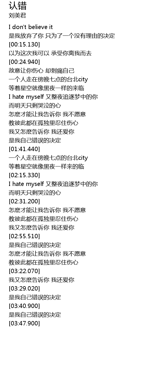 | Song | 认错 |