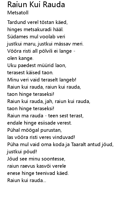 | Raiun kui rauda, jah, raiun kui rauda, | |