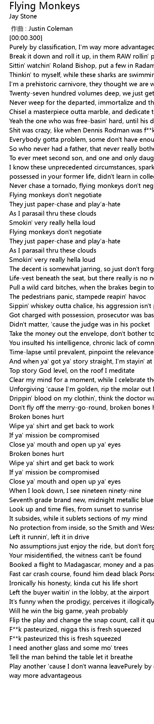 | [00:58.710] | Flying monkeys don' t negotiate |