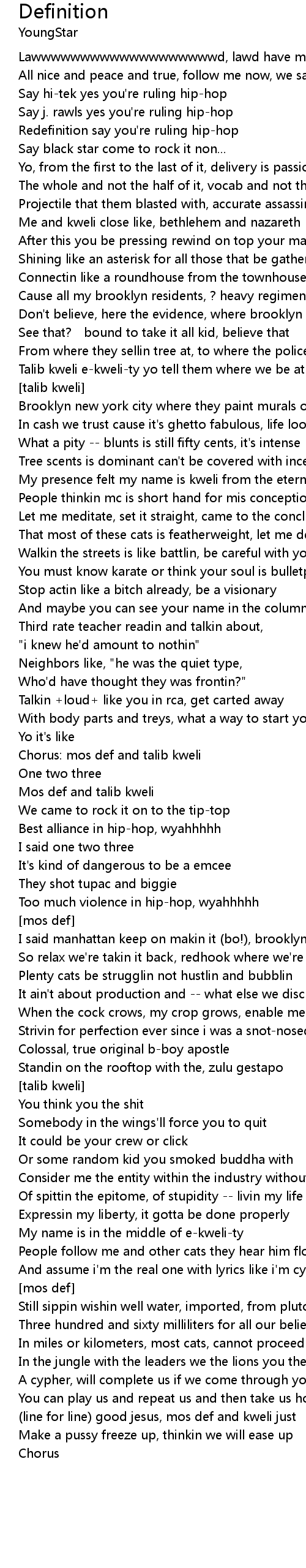 | Talib kweli e-kweli-ty yo tell them where we be at | |