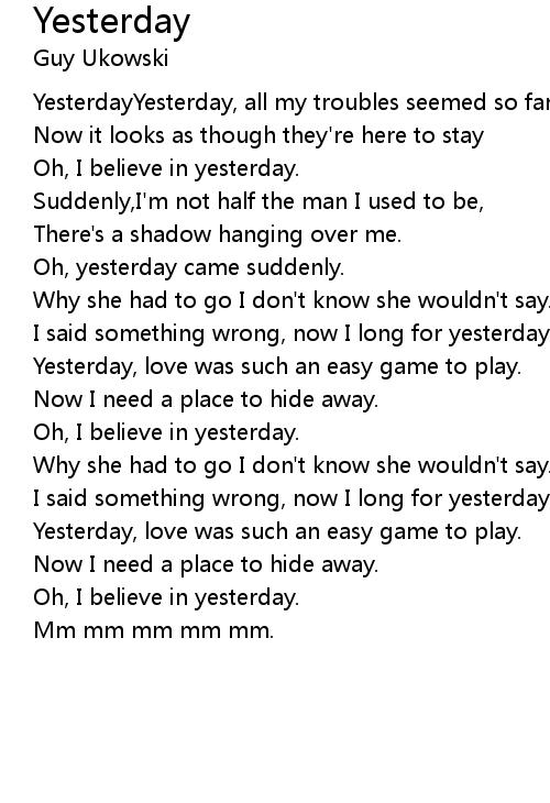 | Song | Yesterday |